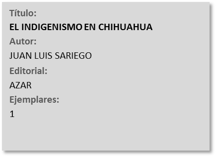Los materiales aquí presentados solo pueden ser consultados de forma física en las instalaciones de la biblioteca en el Centro INAH Chihuahua.