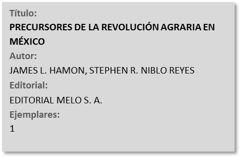 Este material se ha estado registrando en la Base de Datos Logicat desde 1997 con el fin de agilizar su consulta y brindar un servicio rápido y eficiente a los usuarios.